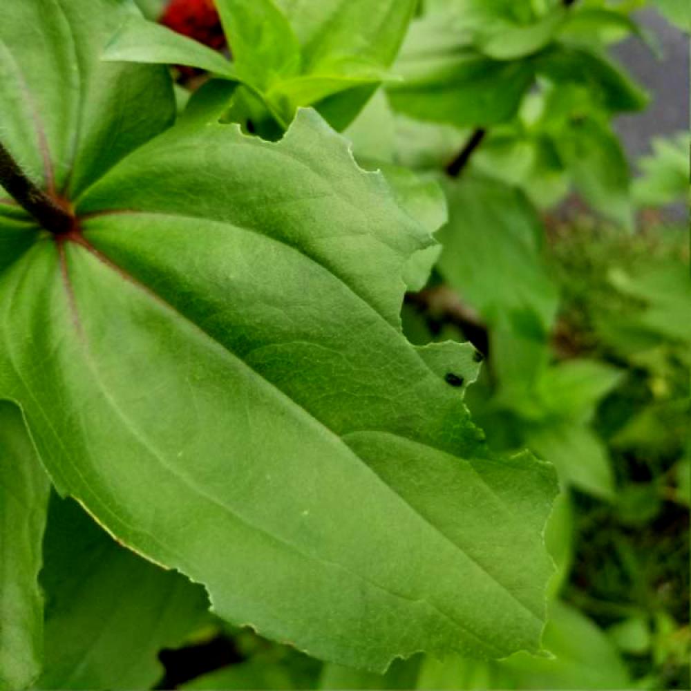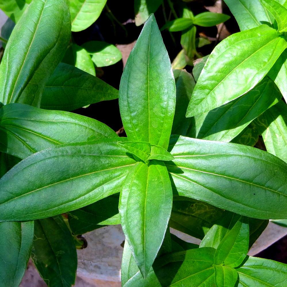 الأوراق بسيطة بيضاوية الشكل يصل طولها إلى 8 سم تقريباً وهي فاتحة اللون ذات حافة كاملة