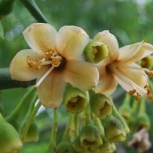 الأزهار ثنائية الجنس طولها 4 سنتيمتر، لونها أبيض دسم ولها رائحة حليبية، تحتوي على خمس بتلات في الخارج تتفتح في الليل