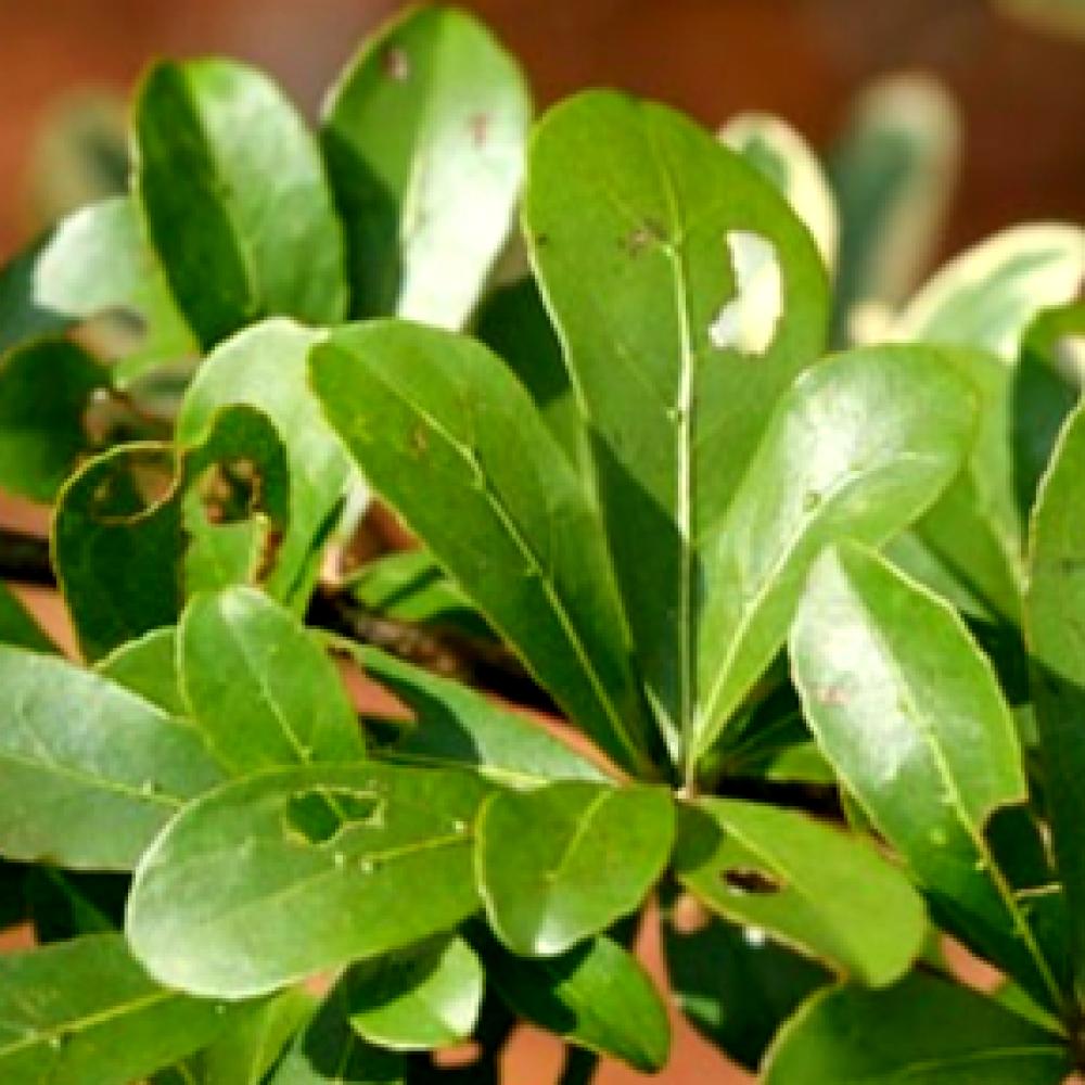 الأوراق خضراء بيضاوية سميكة يبلغ طول الورقة قرابة 5 سنتيمتر